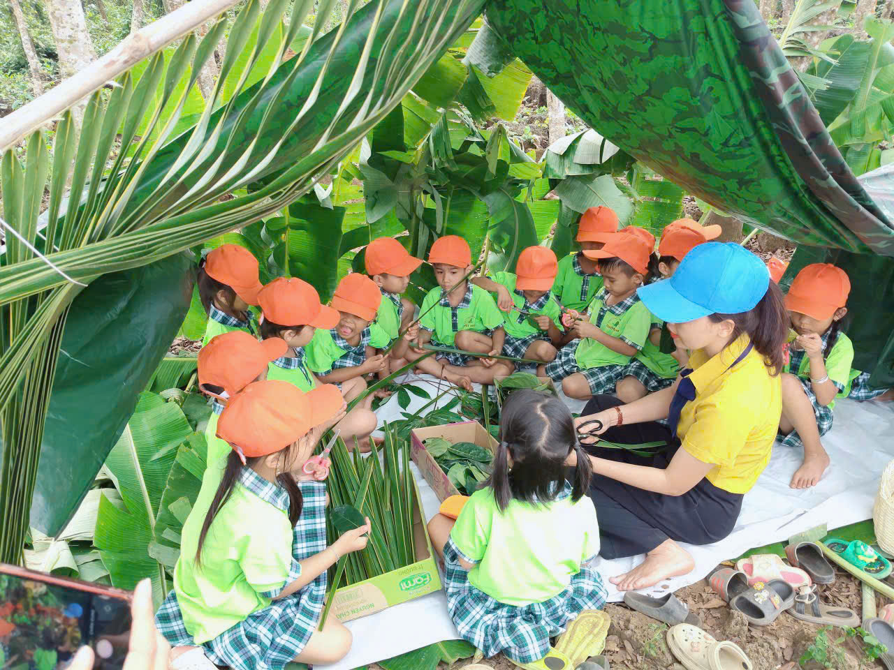 🌷Cùng nhau tham gia trò chơi quen thuộc từ nguyên vật liệu thiên nhiên, làm lều lá chuối, nhảy dây, sáng tạo đồ chơi