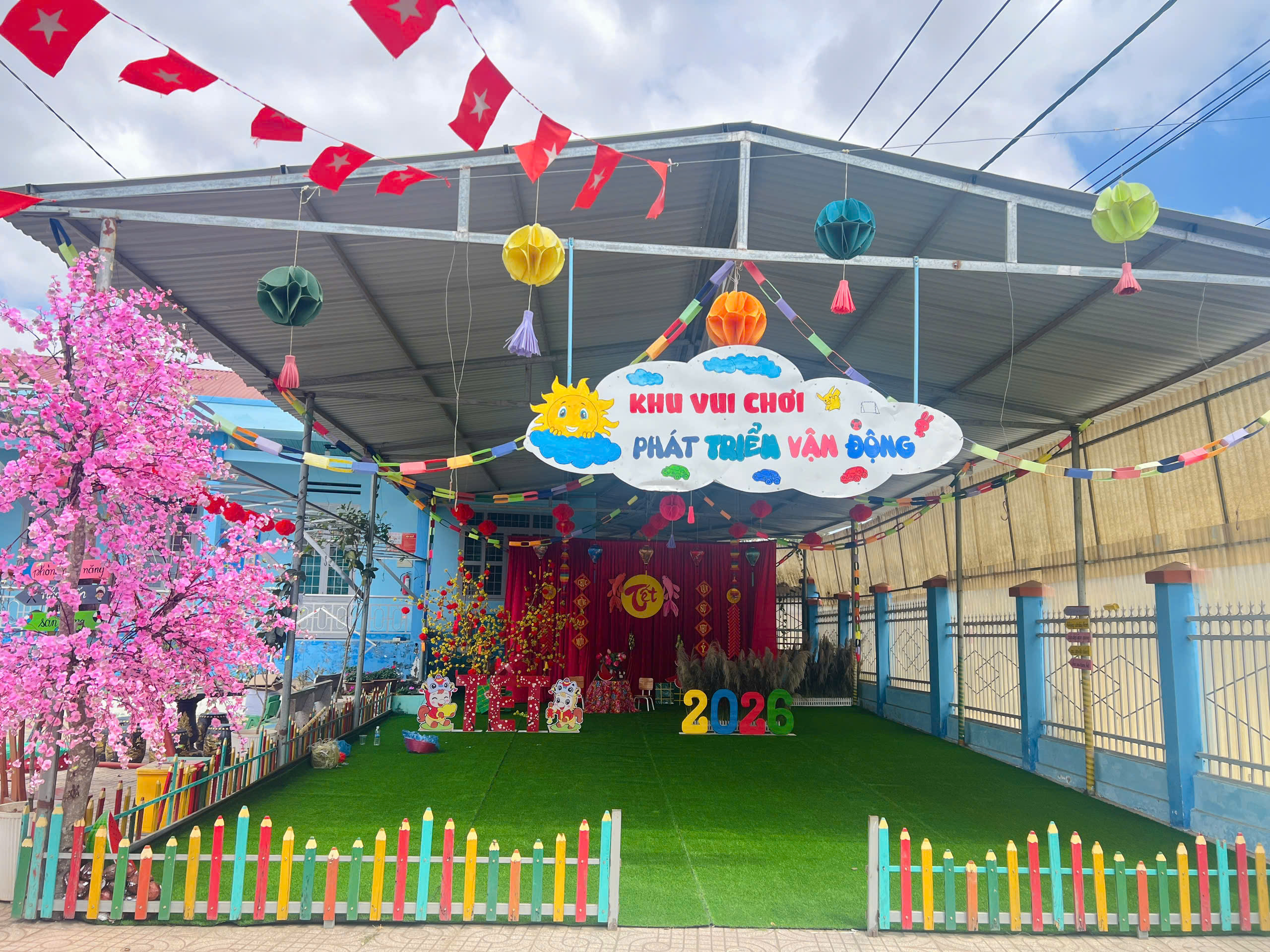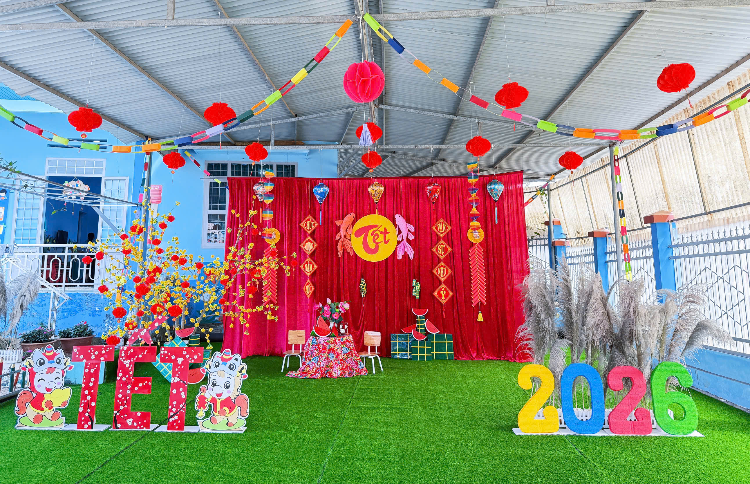 🏡Sáng nay, sân trường bừng sáng với cờ hoa, lồng đèn và góc Xuân xinh xắn, mang đến không khí Tết ấm áp, thân thương. Không gian được trang trí sinh động không chỉ mang đến niềm hân hoan đón Tết mà còn giúp các bé cảm nhận vẻ đẹp truyền thống, nuôi dưỡng tình yêu quê hương và những trải nghiệm đầu đời ý nghĩa.